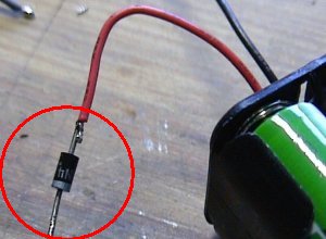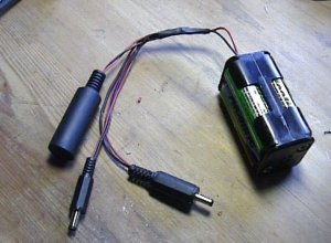 Podemos hacerlo con un simple porta pilas, pues el rango de alimentación va de 4 a mas de 7 Voltios, por lo que con 4 pilas tendremos el alimentador listo. Ahora bien, si queremos usar el mismo porta pilas para alimentar/cargar el PDA lo mejor es que pongamos un diodo ( de esta forma tendremos 6-06 = 5,4 V ), como veremos en las fotos, si solo queréis alimentar el gps olvidaros del diodo.