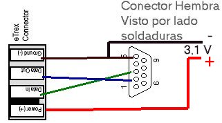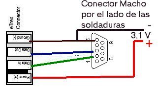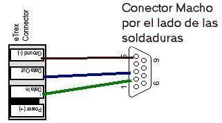 Cogemos el conector del etrex y llevaremos cada cable tal como lo he indicado anteriormente, quedando esto :