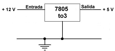 | Utilizando un 7805 en encapsulado TO3, conectando 12 V al terminal entrada obtendremos los 5 V necesarios para la Axim y el Maxim232 |