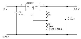 | Aquí tenéis el esquema para los 3,1 V necesarios para el etrex |