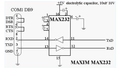 Para la comunicación utilizamos un Maxim232, un integrado de muy bajo coste.
