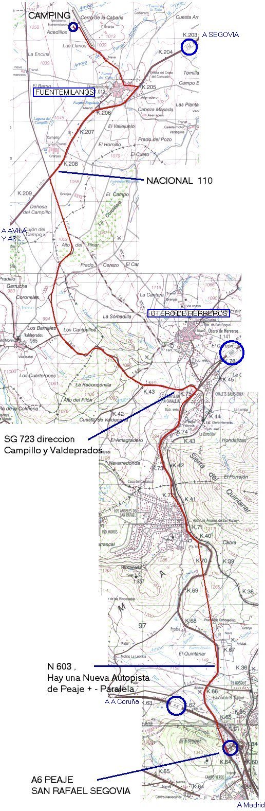 Iria por la A6 salida San Rafael- Segovia, a la entrada de Otero de Herreros coger a la izquierda la SG-723 direccion Campillo y Valdeprados y al poco cruzas la N110 en la que giras a la derecha hacia Fuentemilanos, la carretera esta en perfecto estado y son 21 kms. menos que por Villacastin. Ojo siempre subiendo de Madrid si bajas del Norte esta claro que hay que hacer la opcion que propone RBS. Saludos.