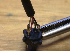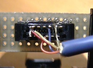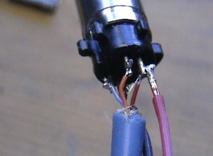 | Aquí tenemos los cables soldados | Aquí el Haicom con el conector puesto |