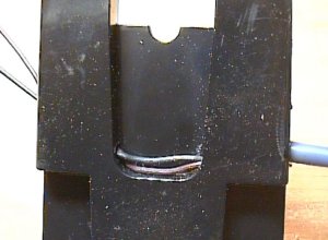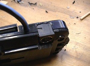 | El conector de alimentación | Vista del soporte una vez cerrado y los conectores pegados, como podéis ver también le quite un trozo a la parte trasera del soporte. |