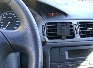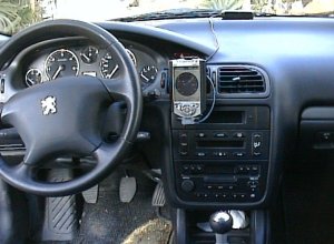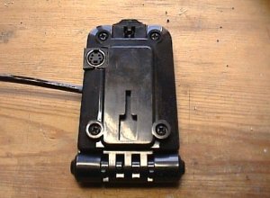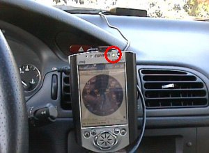 | Utilizando el soporte que tan buenos resultados me ha dado tanto con el Ipaq como con el etrex, esta vez he pensado hacerlo como si fuera la base de sobremesa, es decir, pinchamos el Ipaq. | Aquí se ve el soporte completo, aunque este lo utilizo en la auto |
