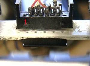 | Una vista un poco de conjunto | El conector en su sitio, como podéis ver tuve que quitarle un trozo al lateral del soporte, pero queda perfectamente enrasado. |