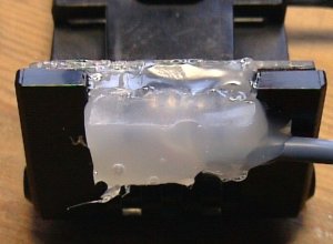 | Todo cerrado con cola térmica con ayuda de un "molde ", después se deja fino con un cuter | Vista del conjunto |