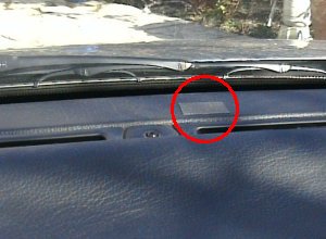 | El soporte "mecanizado" en el porta soporte, el Haicom en su sitio | Esta cogido con un trozo de velcro lo mas adelante y centrado posible en el salpicadero. |