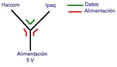 | Conector de entrada de Alimentación | Conector para el Haicom y cable de salida al PDA |