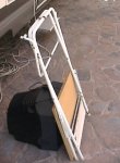 Yo la he hecho cortando un trozo del centro del antiguo soporte de la bañera de mis hijas, y después uniéndolos. Como supongo que no todo el mundo tiene algo similar a mano, os sugiero que cojáis una tabla de planchar y la acortéis , si es necesario desplazar también donde se cogen los brazos a la tabla, el resultado es el mismo, solo que en la mía la tabla es de quita y pon.