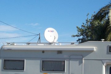 Con el conjunto hemos visto la TV en Holanda, aunque en la zona mas al norte la noche que estuvimos no conseguimos orientarla, estábamos ya en el limite de la zona de recepción del satélite Hispasat para antenas del tamaño de la nuestra ( 70 cm ).