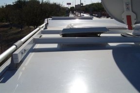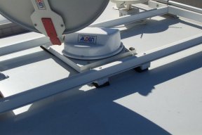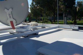 Aquí os muestro como hemos montado la parabólica en el techo de la auto, de forma que al techo no le hemos hecho ningún agujero, hemos montado una estructura de aluminio que hemos cogido a los soportes de la baca.