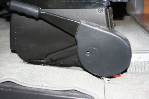 Para la puerta del habitáculo, al ser el seguro como lo de los coches de hace tiempo, lo que hice fue buscar una solución mucho mas sencilla aprovechando que tengo un asidero tanto en la puerta como en la entrada de la auto, con una simple cincha pequeña queda asegurada.