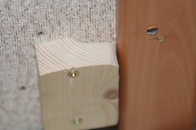 | Las dos piezas puestas en su sitio, esto lo ocultara la tela de la cama. | Soporte entrando en la fijación |