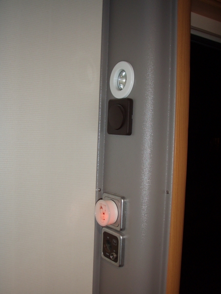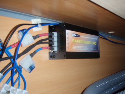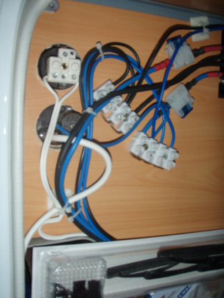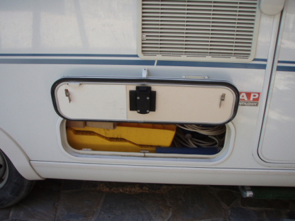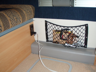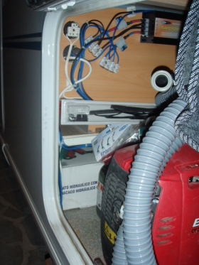 | Toma de 12 V, antena y video que me he puesto en el lateral del armario de encima de la mesa ( al lado de la cama ) | Toma de 12 V y antena, mas toma de 220 y un pequeño halógeno de 10 W para luz de penumbra a la hora de acostarse, el otro piloto me sirve para saber si esta conectado en ondulador, puesto que lo hago via radio, si lo tengo que dejar encendido por la noche entonces quito el chivato, los leds del panel de la auto dan lo suficiente para moverse |