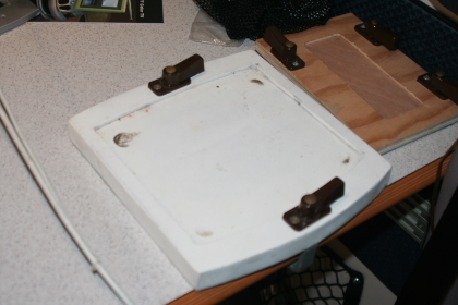 Le di la vuelta a la pieza de madera, y le hice un "cajetin" a la medida del soporte de marquetería, de forma que tampoco sobresaliera y quedara una base nivelada, una vez atornillado le puse villeda tipo terciopelo a la base.