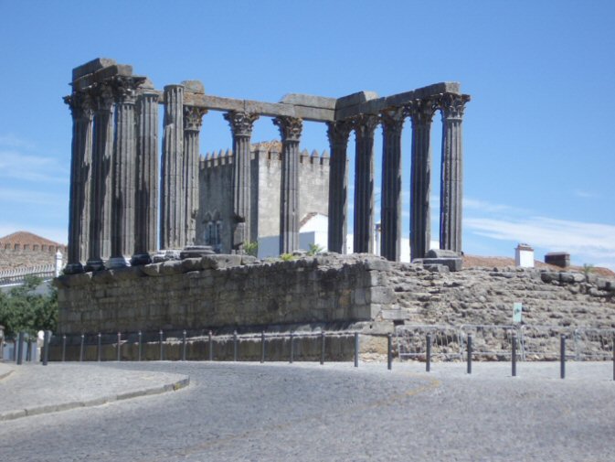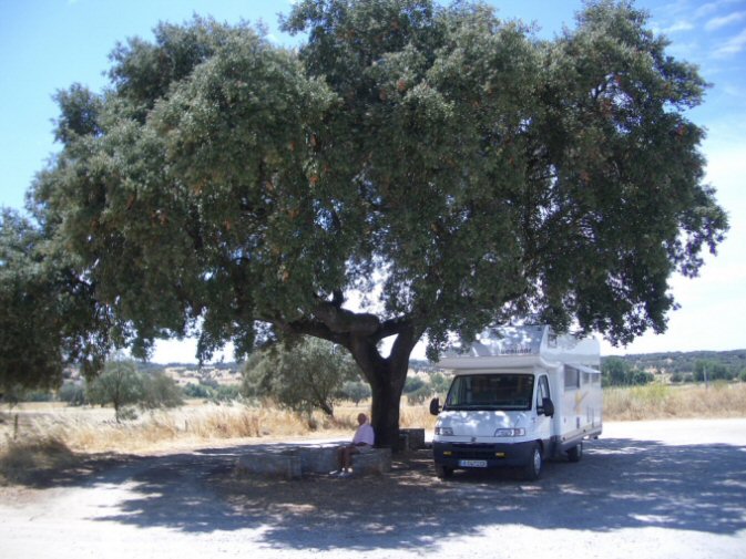 Al día siguiente salida tempranito con dirección a Evora por la autopista de peaje, en la ultima área antes de Evora paro para desayunar y poner la auto en orden, y sorpresa, me encuentro con una área para autos, así que aprovechamos y nos damos todos una ducha “larga”, recargamos y vaciamos. Visitamos Evora, esto si que vale la pena, pero estamos mal acostumbrados a ir a visitar solo lo grande de años anteriores y esto no es lo mismo, aunque esta muy muy bien. Se nos hace un poco tarde para comer, cuando íbamos hacia Evora vi un lugar donde comer a la sombra genial, pero solo cabía uno o dos vehículos como mucho, nos arriesgamos pero por una vez la suerte nos sonríe, solo hay un camión y tal y como esta cabemos, pero tenemos que ir hasta un cambio de sentido y cuando volvemos el camión se ha ido, por lo que nos situamos debajo de la encina todo a la sombra, comida, siestecilla y nos dirigimos a Setúbal por Nacional, la carretera esta bien y no tenemos prisa, y si llegamos a saber que la iglesia que era el principal sitio a visitar estaba cerrada a esas horas y que el centro no tiene nada que reseñar menos hubiéramos tenido.