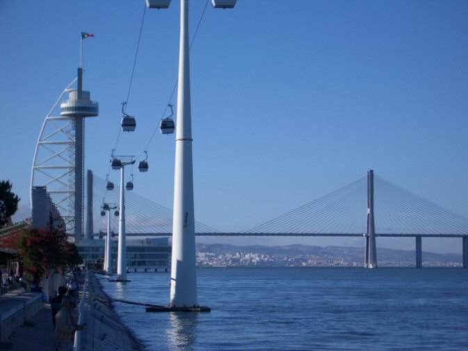 Ya ponemos camino hacia Lisboa, siguiendo por nacional, en algunos tramos no esta bien la carretera, pero mas que aceptable, nos parece que no merece la pena entra al camping a las horas que llegaríamos, así que nos dirigimos a Costa Caparico donde en la guía indica que hay unas zonas de acampada ( me extrañe cuando lo leí ), y en efecto las hay, son como camping privados pero sin el como, pertenecen a distintos clubs campistas y son enormes y las caravanas están hacinadas, calculo que el 85 % de las caravanas que hay allí no se pueden mover si no se mueven antes unas cuantas, nos colocamos entre dos de ellos y dormimos, al día siguiente echamos un vistazo a la playa, que es donde van los Lisboetas, y nos llama la atención la cantidad de niños que hay ( de guarderías o similares, pero la mayoría entre los 3 y 5 años ), pero cuando volvemos hacia la auto pasan unos cinco autocares también llenos de niños y ya de camino hacia Lisboa perdimos la cuenta de los que vimos, aun no sabemos el porque. Cruzamos el puente 25 de Abril ( de peaje ( 2,75 € )) y nos dirigimos al camping Monsanto, nos instalamos y nos relajamos con un baño en las frías aguas ( al menos para nuestra costumbre ) de su piscina, el camping esta muy bien, comemos tranquilamente y cogemos un autobús ( línea 50, en la puerta del camping hay un kiosco amarillo que venden pases por un día para bus tranvía y elevadores, vale la pena comprarlos, el camping esta muy bien comunicado por bus con las zonas interesantes de Lisboa, la mencionada 50, la 14 y la 43, todas con parada en la misma puerta o a 100 mtrs del camping , también en la entrada del camping hay una furgoneta de turismo donde me informan de líneas a coger, me surten de planos ( de El Corte Ingles J ) etc , muy amables) hacia el oceanográfico de Lisboa, que es de la Expo 98, esta muy muy bien, aunque particularmente me gusta mas el de Valencia, damos un paseo por la zona, muy moderna y espectacular, y nos volvemos al camping, ya la tarjetas de las cámaras se van llenando y por previsión decido descargarlas, sorpresa, el portátil no arranca después de encenderlo y acto seguido conectarlo a la red, pero na de na, se enciende la luz pero parpadeando y nada mas, mosqueado pienso si no será que la batería ( que ya no sirve mas que para hacer que pese mas ) ya a dicho bye bye total, pero no, tiene una tensión mas que aceptable, pruebo varias cosas y nada, empiezo a desmontar el portátil y cuando ya casi lo tengo desmontado se me ocurre una prueba, la hago y bingo, arranca, deduzco que a sido porque conecte el enchufe del portátil y después encendí el ondulador, y algún pico le a debido de llegar que a bloqueado la fuente ( en mi trabajo tengo varios ordenadores que les ocurre cuando se prueba el grupo electrógeno ), pero la batería no me permitía hacer la prueba como debía de hacerla. Bueno pues ya tengo las fotos descargadas, he escrito todo lo que hay desde el principio hasta aquí y como es la 1:15 en España ya lo dejo y me voy a dormir, mañana visitaremos Lisboa, pero aun no he decidido si Belem o el centro.