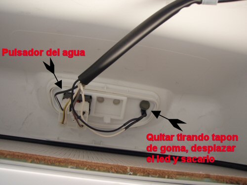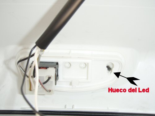Siempre queda la posibilidad de que haya un fallo eléctrico de la instalación del WC, pero es muy fácil de saber si hay problema o no, simplemente con un imán, lo acercamos al reed y el led se encenderá ( no hace falta sacarlo, alguien nos lo puede indicar desde el aseo ), si no se enciende ya hay que mirar mas cosas, pero si se enciende, que será lo normal, ya sabemos que el problema esta en el cassette y la solución. Para sacar el led no hay mas que tirar del taponcito de goma hacia abajo y después desplazar el led hacia el interior y sacarlo.