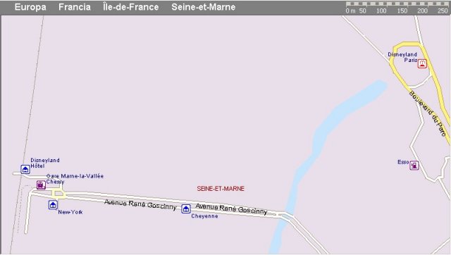 Aqui tienes la pantalla de una zona de Francia, como podras comprobar se trata de Eurodisney, pero casi toda Francia viene con el mismo nivel de detalle, lastima que España no. Si has estado alli compara con lo que viste y saca tus conclusiones. Observa tambien la escala que aparece en la esquina superior derecha.