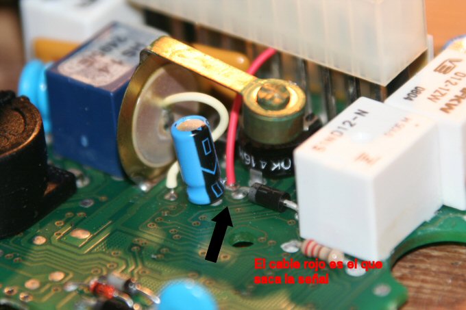 Con dos flechas negras los puntos donde soldaremos los dos cables