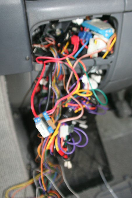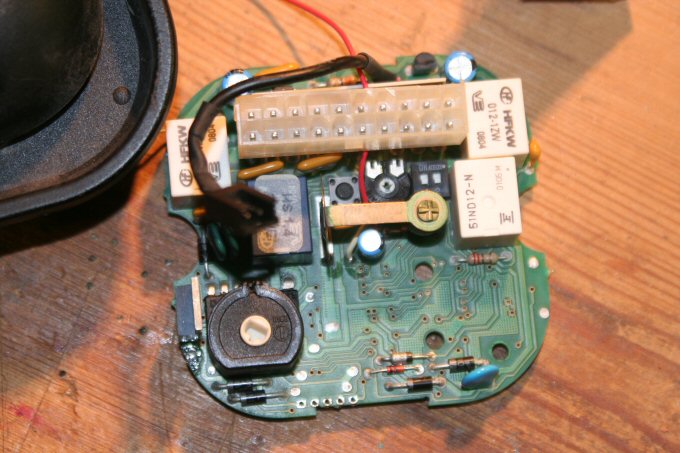 | El circuito entre toda la maraña de cables de la alarma, del control de velocidad, y otros, lógicamente el circuito hay que aislarlo, bien envolviéndolo por ejemplo con cinta americana o bien metiéndolo en una cajita, el caso es que hay que evitar que cualquier parte metálica pueda tocar con el chasis del vehiculo. |