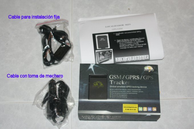 El aparato en cuestión trae el propio aparato, un cable de toma de mechero, un alimentador a 220, un cable para instalar fijo en un vehiculo, dos baterias ( con una me basta ), un cargador externo de bateria y el manual. Solo nos queda añadir una tarjeta de una compañía, en mi caso Vodafone por tener el resto de móviles de la familia de esa compañía, mencionar que se pueden configurar hasta 5 móviles que pueden recibir los sms. Estos sms se componen de latitud, longitud, velocidad, fecha, hora, y nivel de bateria y señales, además de la palabra de la función de la que nos avisa.