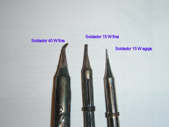 Distintas puntas de soldador, usaremos la de 15 W de aguja