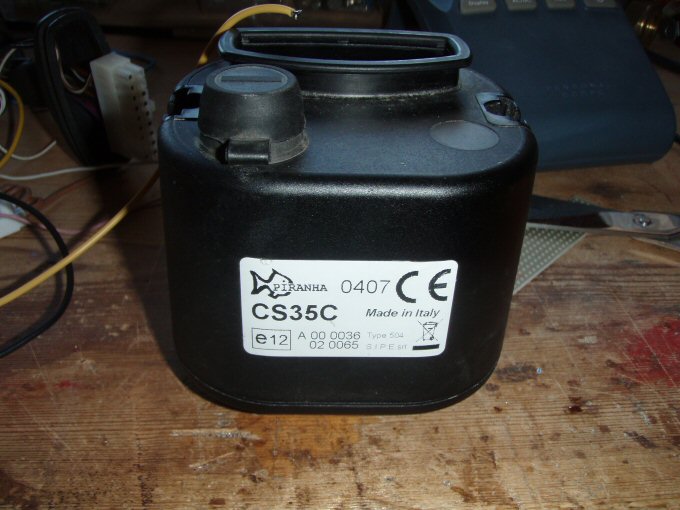 Alarma integrada Piranha CS35C, para desmontarla no hay mas que soltar dos tornillos de la carcasa que nos permitirán sacar la carcasa, y después dos tornillos que nos permiten soltar la placa electronica |