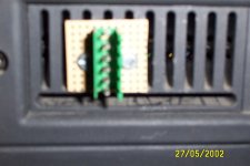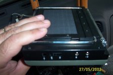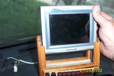 Después de mucho buscar di con una TV plana TFT de 5,6 " , era condición que fuese TV y que llevara entrada de video, la conseguimos por 498 € en FNAC ( ahora también la venden en Media Mark, y en Andorra la misma, idéntica, menos la marca estaba este verano del 2002 por 270 € ), a partir de ahí compre una cámara en color ( 28.000 ptas ) y en superinventos una lente de 120º , aunque tengo el problema de imagen en espejo, en los EEUU después he encontrado por internet sitios que tienen este tipo de cámara con la función espejo, lo que me hubiera ahorrado mucho trabajo. A dia de hoy aun no he conseguido ningún circuito electrónico que me realice la función espejo, por lo que como podéis ver en las fotos le puse un espejo, y por supuesto la motorice con el mismo sistema que aparece en retrocamara . Aproveche la instalación que traía la antigua cámara, y los resultados fueron muy buenos, después de solucionar un problemon, y es que me salían tal cantidad de interferencias que como quien dice no veía nada, descubrí que eran motivadas por el servo, pero por mucho filtro que ponía no mejoraba, al final descubrí que era porque no había tenido la precaución de equilibrar el peso de la caja sobre el eje de giro, lo que hacia que el servo estuviera constantemente corrigiendo su posición, contrapese la caja y listo.