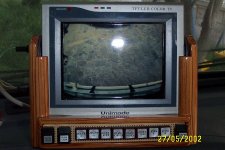 | Metiendo/sacando la TV del sitio, aprovechamos el porta monitor que venia con el de B/N | Hicimos un armazón en madera cogido al que venia y bajo van los pulsadores |