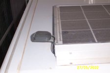 | Teclado Infrarrojos, es también ratón, su tamaño es mas pequeño que los normales | Antena reradiante, cogida a la placa solar con una L y pasado el cable por donde pasan los de la placa, tuve que desmontar y desoldar el cable de la antena para que pasara. |
