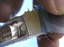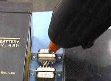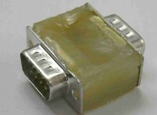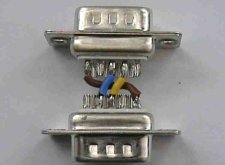 Opción 1 : construirnos un nullmodem, con dos conectores DB9 macho, solo tenemos que unir el 2 de uno con el 3 del otro, el 3 con el 2 y el 5 con el 5. Viendo las fotos lo tendreis mucho mas claro, aunque siempre podreis hacerlo con un cablemas largo y las carcasas de los conectores, pero como aparece en las fotos queda muy pequeño y robusto, el material de relleno es cola termica ( la que se pone con las pistolitas )