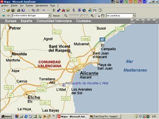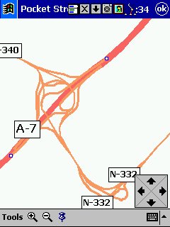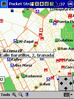Versión PocketPC, gran decepción, era muy esperada esta versión y había muchas esperanzas. Utiliza la misma cartografía, hasta aquí todo muy bien, pero... actualiza cada 15 seg., no podemos ni crear rutas ni cargar las que hayamos creado con el PC, ni nos muestra algunos datos de navegación, en definitiva, aunque hace moving map y la cartografía es buena en la practica solo nos sirve para saber donde estamos y como base de datos de hoteles, parques etc. Muy bueno, pero no para circular en vehículo con el. Los mapas los creamos nosotros desde la versión PC, seleccionando el área de mapa que queramos, tampoco cambia automáticamente a otro mapa cuando nos salimos del actual. Además el modulo GPS no viene en los CD's, hay que descargarlo de la pagina de Microsoft y al instalarlo nos pasa el programa a ingles.