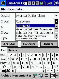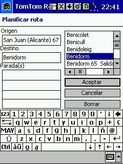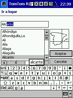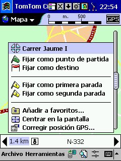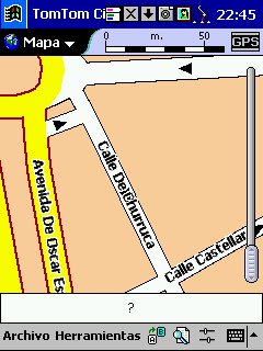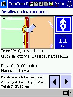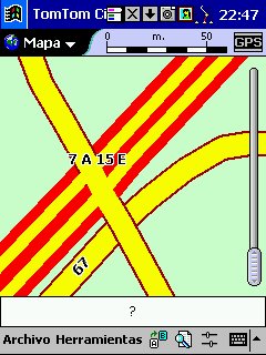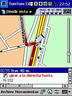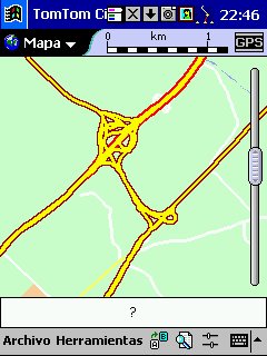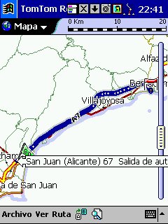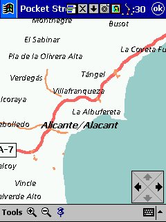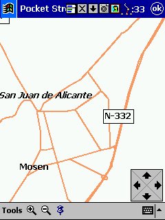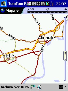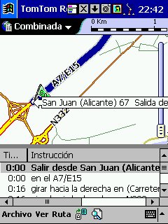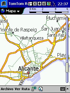 Tom Tom Routeplanner : Solo PDA, todas las plataformas, es la evolución con muchísimas mejoras del antiguo RoutePlanner Millenium, que entonces solo estaba disponible para Palm, en la actualidad esta para todas las plataformas, aunque hay pequeñas diferencias, una de ellas es que al castellano solo esta traducida la versión para PocketPC. Este programa es genial, voy a comentarlo desde el punto de vista de PocketPC, que es lo que yo tengo. Utiliza la misma cartografía que el Autoroute, nos permite calcular rutas, guardarlas, nos da indicaciones bastante buenas sobre la marcha, los mapas no ocupan mucho ( España al máximo 5 Mg, Francia 9 Mg ), actualiza cada segundo nuestra posición, tiene bastantes niveles de zoom y es muy fácil movernos de un nivel a otro con el pad del Pocket. Aparte de detalles menores, la única pega es que no nos calcula rutas de un país a otro, p.e. de San Juan de Alicante a Paris tengo que cargar el mapa de España y calcular San Juan - La Junquera y guardarlo y después tengo que cargar Francia y calcular no me acuerdo el nombre - Paris y lo mismo, el no cambia de un mapa a otro, aunque no se suele hacer y además es sencillo y rápido.