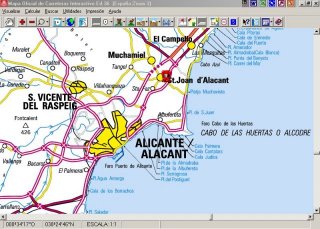 Este es el programa estrella en el apartado GPS, nos permite infinidad de posibilidades y de estudio de datos. Este soft no trae ninguna cartografía, la cartografía se la introducimos escaneando los mapas que deseemos y calibrándolos, trabajo sencillo pero a veces laborioso, su gran inconveniente es la dificultad de encontrar a veces la cartografía deseada y que no calcula rutas automáticamente, aunque podemos trazarlas a mano, como contrapartida tiene innumerables ventajas sobre el resto, nos muestra en pantalla muchos datos simultáneamente, es el que mejor desplaza los mapas, va almacenando todos los datos que le llegan del GPS, con lo que después podremos estudiarlos si así lo deseamos. La cartografía puede ser muy detallada, por ejemplo toda la comunidad Valenciana esta disponible en Internet a escala 1:10.000, y con unas ligeros trabajos queda listo para su uso, e incluso podemos escanear fotografías, como es el caso de Murcia capital, a escala 1:5000, por lo que vamos viendo sobre la foto nuestra ubicación. En la actualidad y dados los avances que han dado otros programas con la cartografía, su uso automovilístico en carretera quedaría restringido a zonas muy concretas, o bien cuando nos movemos por la zona digamos de destino, si hemos podido conseguir cartografía detallada. En el uso fuera de carreteras es insustituible, ya sea en Mountain Bike, en Moto TT, coche TT, o senderismo. De todas formas es un programa que debería de tener cualquiera que tenga GPS. Señalar que los mapas escaneados ocupan bastante espacio, y que el programa busca el mapa de mas detalle, o el que corresponda a la situación en la que nos encontremos, según nos vamos desplazando, de tal manera de que si se nos termina un mapa el buscara otro, esto es muy útil, cuando hago desplazamientos a un lugar, para el desplazamiento largo normalmente me sobra con uno escala 1:1.000.000, pero cuando me acerco a la zona a visitar, de la cual normalmente me he buscado mapas mucho mas detallados, el solo cambia a el mapa detallado, y viceversa cuando abandono la zona a visitar.