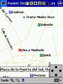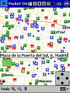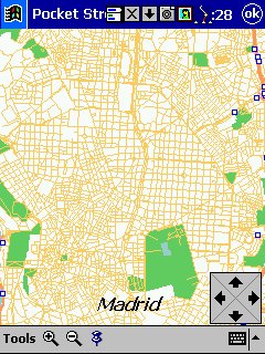 Tom Tom Citymaps: Solo PDA. Aquí nos encontramos con callejeros de ciudades, muy completos, nos calcula rutas de una calle a otra, tiene en cuenta el sentido de las calles, y nos da indicaciones aun mas precisas y detalladas que el Routeplanner, yo tengo el de Madrid ( incluye alrededores ) y solo puedo decir que GENIAL, me llevo de un sitio a otro rápida y fácilmente, el look es prácticamente igual al routeplanner, pero con alguna función mas, lo único que hecho en falta es la numeración de las calles, que no viene. Ahora ya tengo el CD de Europa, con multitud de callejeros, aunque de España solo están las grandes ciudades ( no todas las capitales ) y la mayor parte de la costa mediterránea. Las ciudades hay que cargarlas individualmente ( cubren la ciudad y alrededores ), es decir no podemos cargar de una sola vez todas las de España ( aunque se pueden cargar una a una todas ), para cambiar de una zona a otra tendremos que indicárselo al programa ( se hace rápidamente )