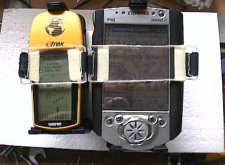 En las imagenes queda bien claro como esta construido, por lo que solo me queda decir que cuando hacemos una parada en la que por ejemplo dejamos atada la bici, el conjunto se quita y se pone en un instante, el montaje del GPS y el PDA en el soporte tambien es rapidisimo, y ni el GPS ni el PDA se mueven para nada, y el soporte es practicamente imposible que se salga, al fijar con velcro los soportes de escoba, por si acaso.