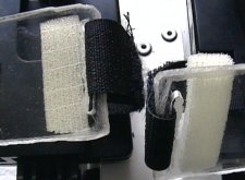 Lo unico a tener en cuenta es que el velcro hay que ponerlo de forma que siempre nos quede la zona donde tenemos que "abrocharlo" en el lado en el que podemos realizarlo mas facilmente. El velcro que va sobre el metacrilato va por un lado cosido ( el comun a ambos aparatos ) , y por el otro lo pasamos y abrochamos.
